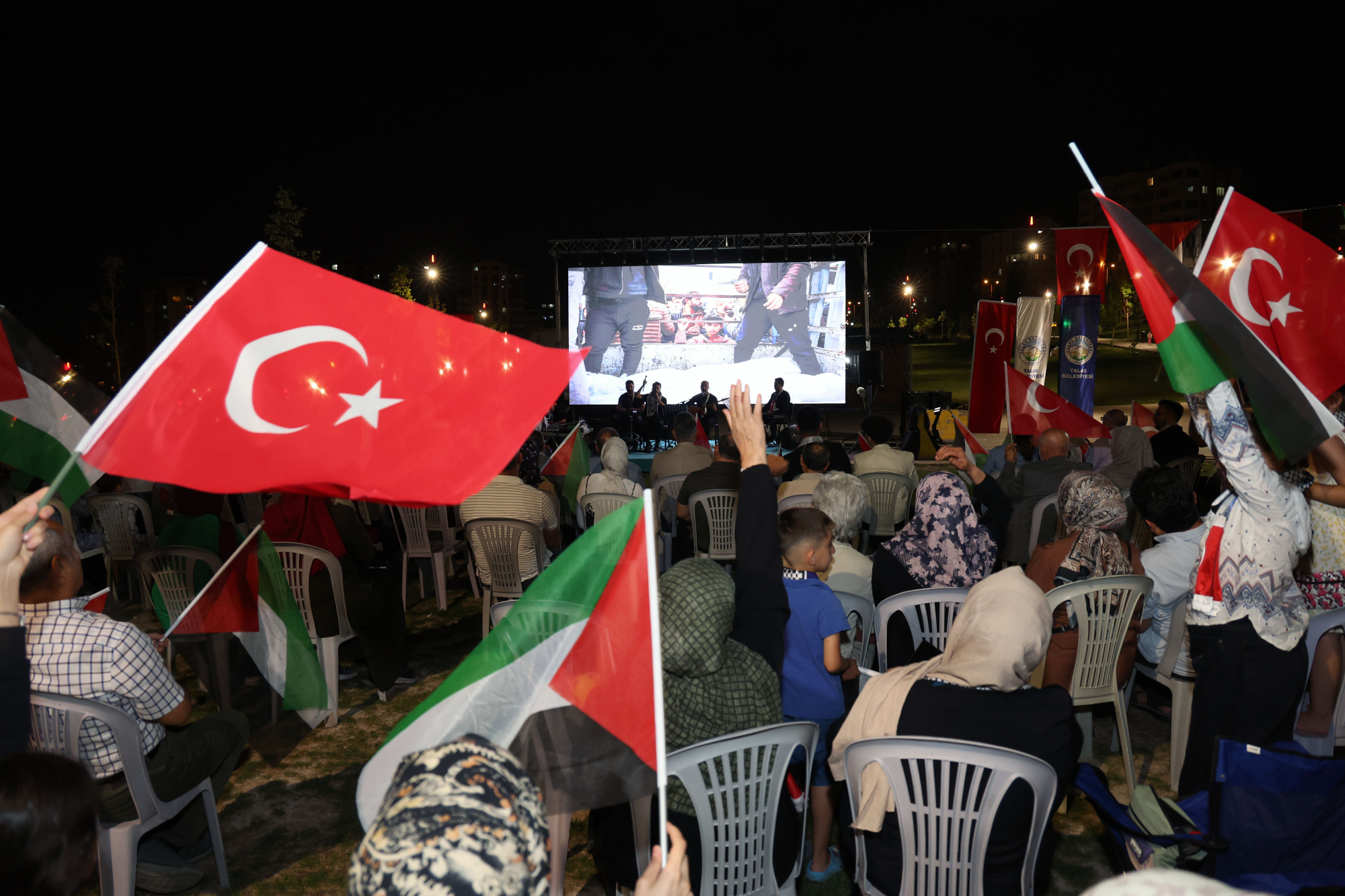 Diriliriz” gibi ezgiler ise alanda hep bir ağızdan söylendi, meydanda Gazze